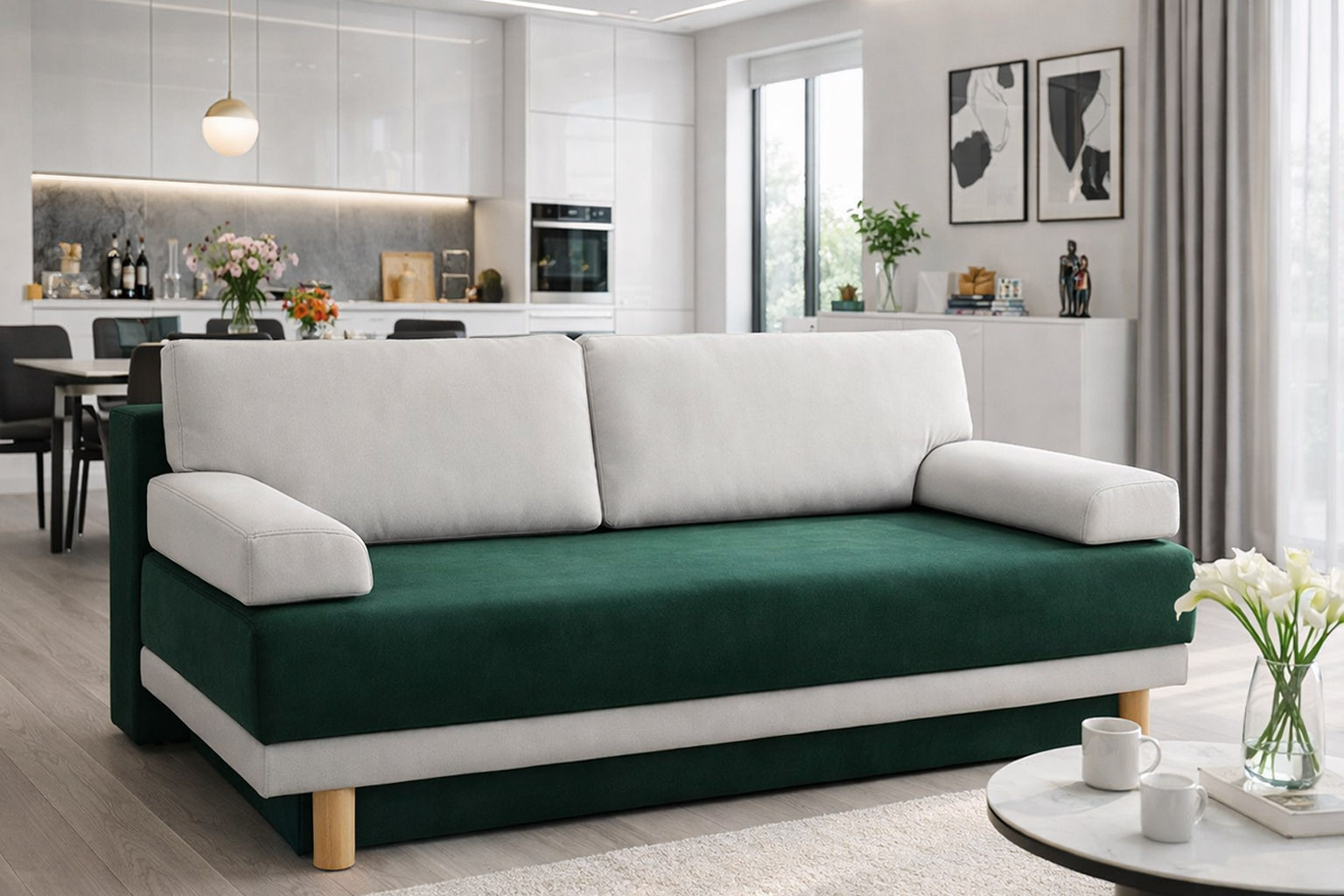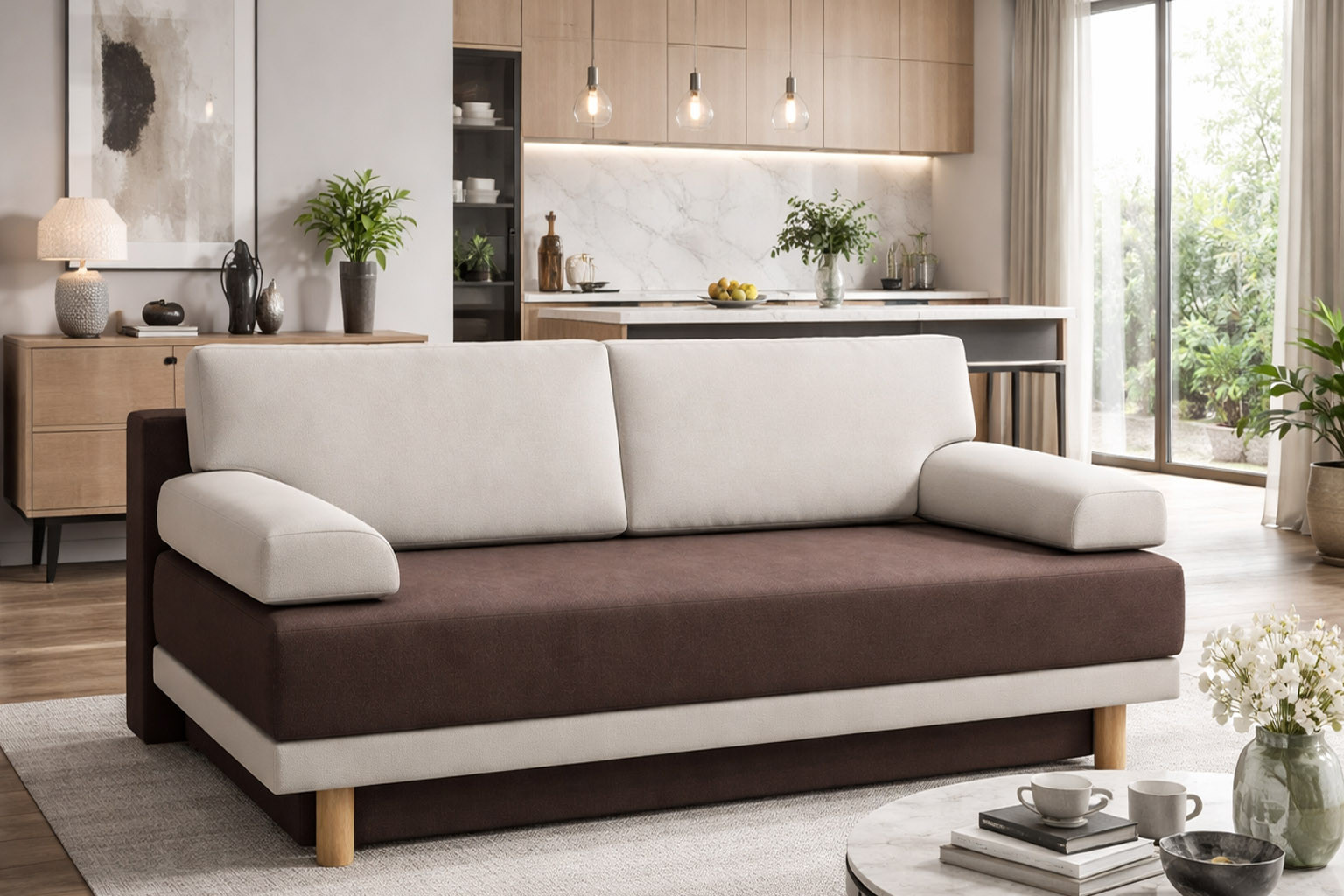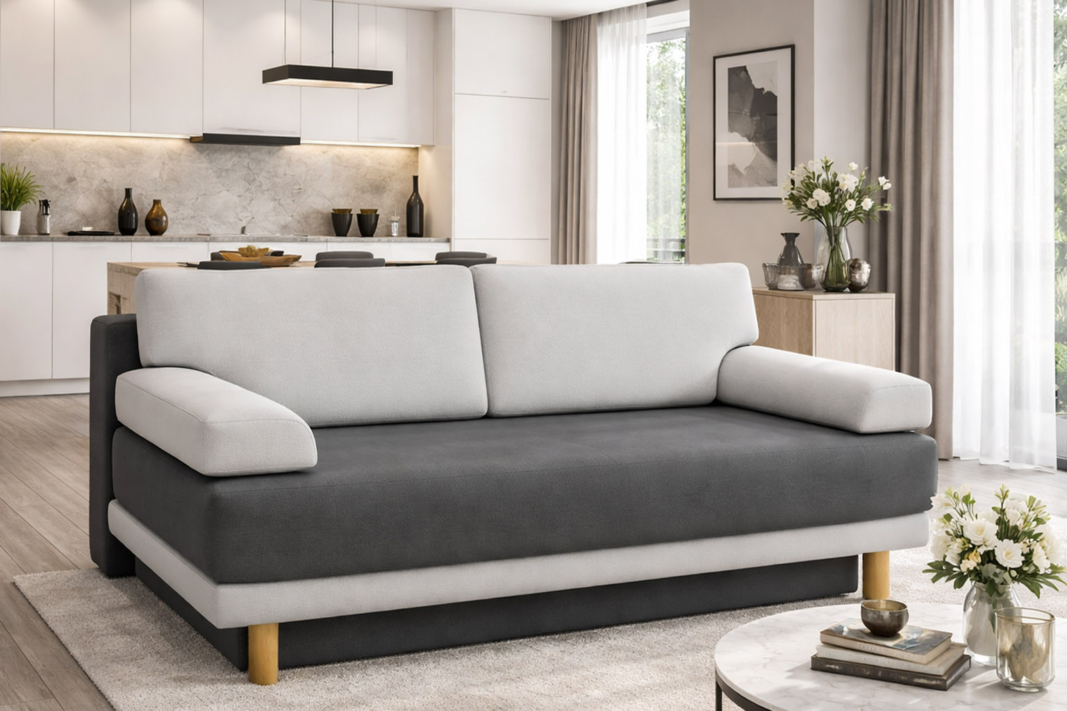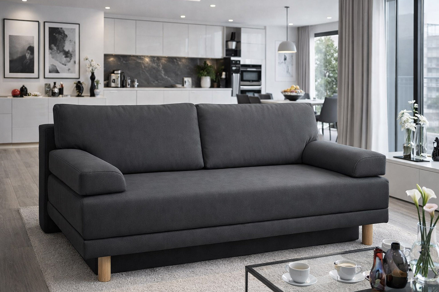 width: 207cm / height: 77-83cm / depth: 100cm / bed size: 205cm x 148cm; automat in standard version
