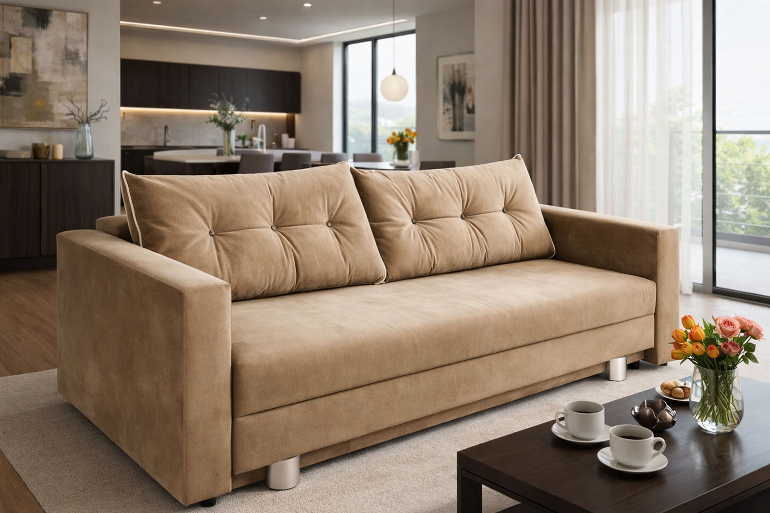 width: 235cm / height: 75-90cm / depth: 93cm / bed size: 200cm x 145cm; automat in standard version